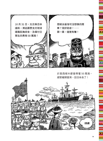 10 月 31 日,北京與日本 想統治臺灣可沒想像的簡 議和,清廷願意支付琉球 單?見好就收!…… 遭難民撫卹金,及償付日 算一算,還是有賺! 軍出兵費用 50 萬兩! 於是西鄉大都督帶著 50 萬兩, 趕緊離開臺灣,回日本去了! 待續 19 ɨʹ @ဘ༑ዝ̦ JOEE @ဘ༑ዝ̦ JOEE ɨʹ