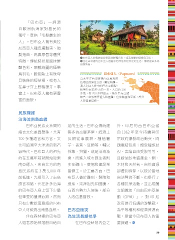 特徵,傳統裝扮是面抹鮮 ❷住在森林裡的巴布亞人過著原始部落自給自足的生活,傳統建築多為