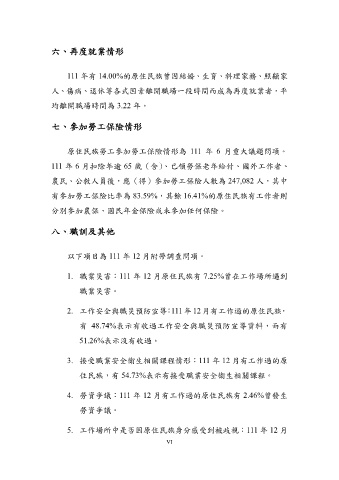 1. 職業災害:111 年 12 月原住民族有 7.25%曾在工作場所遇到
