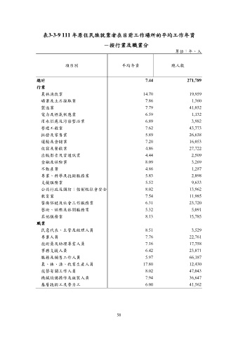 表3-3-9 111 年原住民族就業者在目前工作場所的平均工作年資