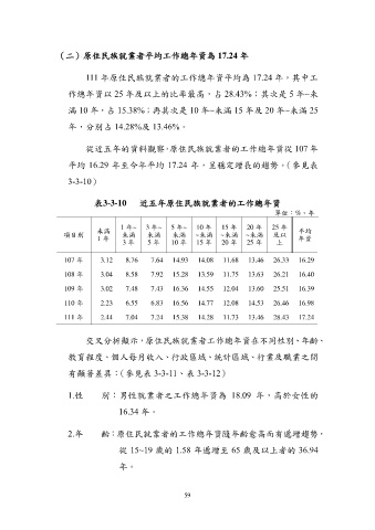 (二)原住民族就業者平均工作總年資為 17.24 年