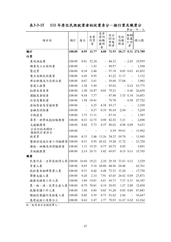 表3-3-15 111 年原住民族就業者的從業身分-按行業及職業分