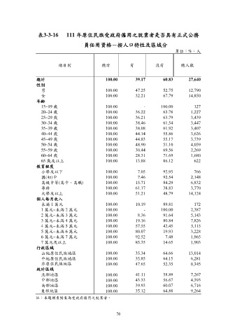 表3-3-16 111 年原住民族受政府僱用之就業者是否具有正式公務