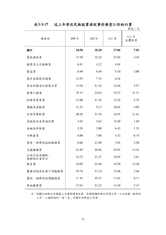 表3-3-17 近三年原住民族就業者從事非典型工作的行業