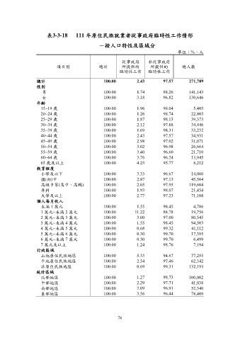 表3-3-18 111 年原住民族就業者從事政府臨時性工作情形