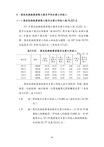 (一)原住民族就業者每人每月主要工作收入為 32,222 元