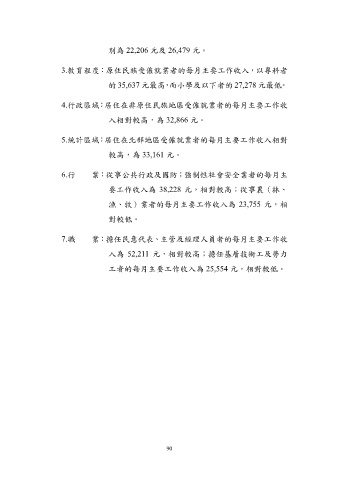 4.行政區域:居住在非原住民族地區受僱就業者的每月主要工作收
