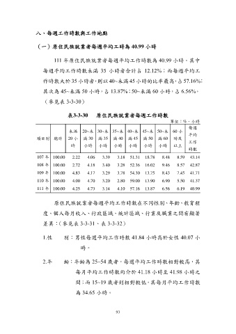 111 年原住民族就業者每週平均工作時數為 40.99 小時。其中