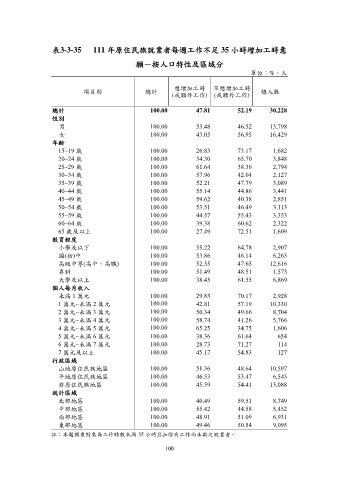 表3-3-35 111 年原住民族就業者每週工作不足 35 小時增加工時意