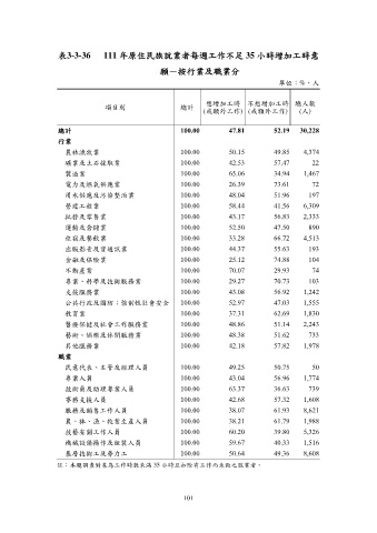 表3-3-36 111 年原住民族就業者每週工作不足 35 小時增加工時意