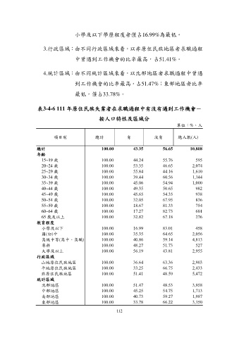 表3-4-6 111 年原住民族失業者在求職過程中有沒有遇到工作機會-