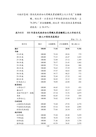 表3-4-11 111 年原住民族非初次尋職失業者離開上次工作的方式