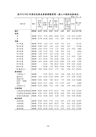 表3-5-2 111 年原住民族未參與勞動原因-按人口特性及區域分