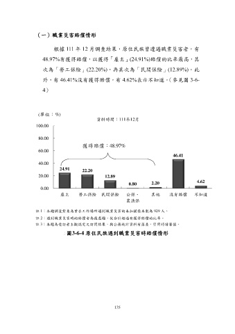 外,有 46.41%沒有獲得賠償,有 4.62%表示不知道。(參見圖 3-6-