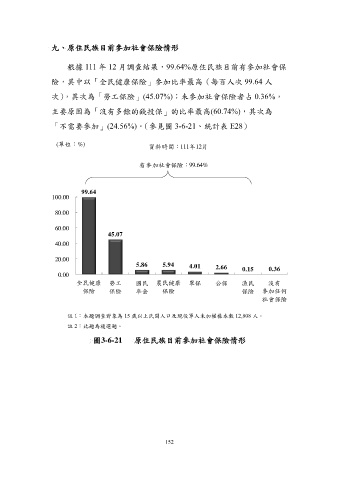 根據 111 年 12 月調查結果,99.64%原住民族目前有參加社會保