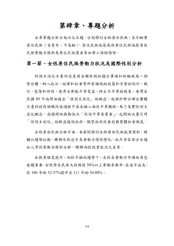 本章專題分析分為四大主題,分別探討女性原住民族、各年齡層