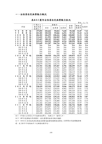 註 2:105 年度勞動力參與情形、就失業情形無性別統計數據。