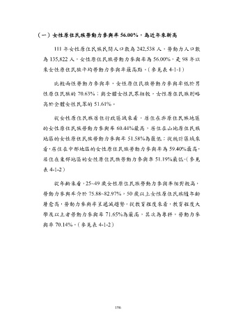 (一)女性原住民族勞動力參與率 56.00%,為近年來新高