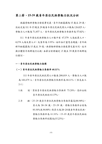為 141,679 人,青年原住民族勞動力參與率為 68.11%。(參見表 4-