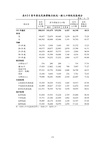 表4-2-1 青年原住民族勞動力狀況-按人口特性及區域分