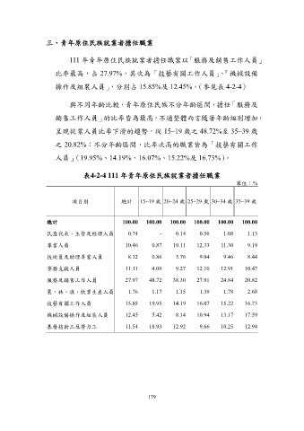 表4-2-4 111 年青年原住民族就業者擔任職業