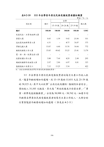 表4-2-10 111 年在學青年原住民族受僱就業者擔任職業