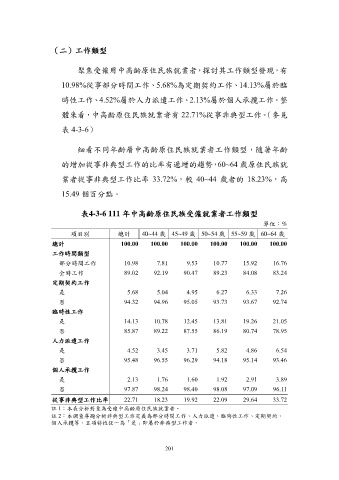 表4-3-6 111 年中高齡原住民族受僱就業者工作類型