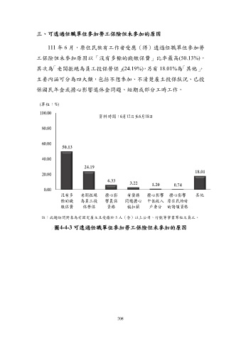 工保險但未參加原因以「沒有多餘的錢繳保費」比率最高(50.13%),