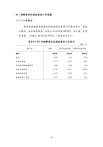 表4-5-5 111 年城鄉原住民族就業者工作身分