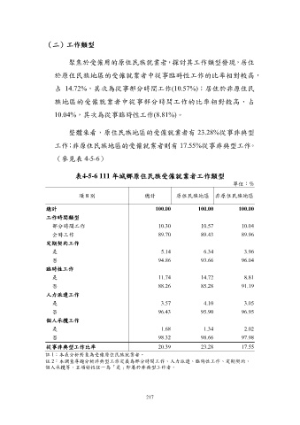 表4-5-6 111 年城鄉原住民族受僱就業者工作類型
