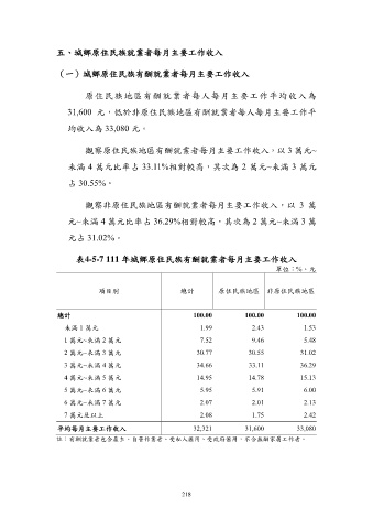五、城鄉原住民族就業者每月主要工作收入