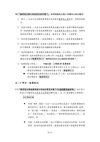 B6.「請問您主要工作的身分是什麼?」:本問項係依主要工作場所之身分填列。