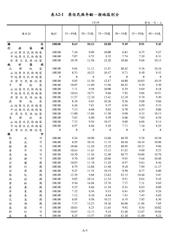 平 地 原 住 民 族 地 區 100.00 7.13 8.68 9.82 8.70 6.53 8.06