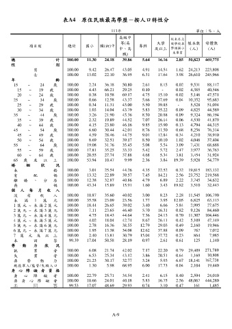 表A4 原住民族最高學歷-按人口特性分