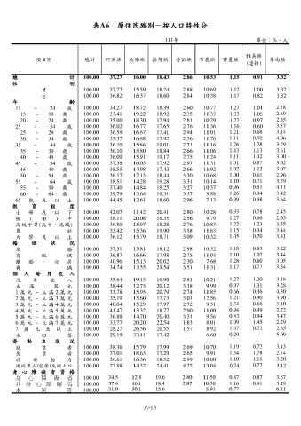 表A6 原住民族別-按人口特性分
