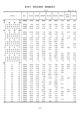 表A6-1 原住民族別-按地區別分 1 原