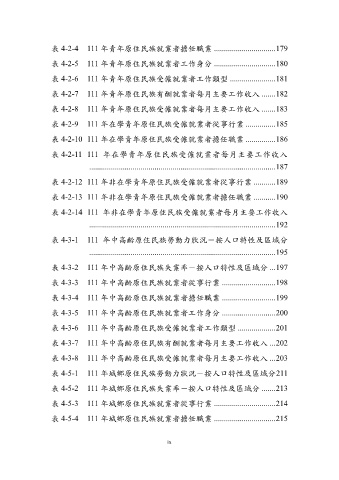 表 4-3-3 111 年中高齡原住民族就業者從事行業 ........................... 198