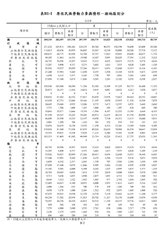 表B1-1 原住民族勞動力參與情形-按地區別分 表B1-1 原住民族勞動力參與情形-按地區別分(續)