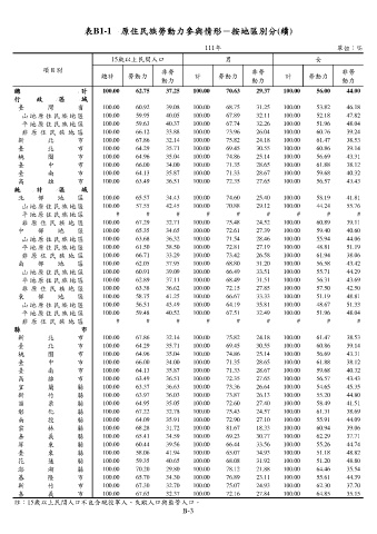 表B1-1 原住民族勞動力參與情形-按地區別分(續)
