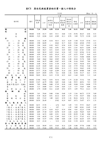表C1 原住民族就業者的行業-按人口特性分
