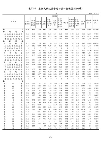 平 地 原 住 民 族 地 區 13.81 - 3.88 0.40 4.08 0.28 9.35 5.23 5.19 2.89 2.47 136 1,256