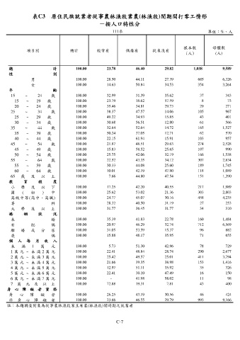 表C3 原住民族就業者從事農林漁牧業農(林漁牧)閒期間打零工情形
