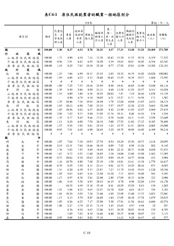 平 地 原 住 民 族 地 區 100.00 0.95 7.91 6.65 6.90 26.65 5.25 18.75 10.89 16.05 6,409 59,210