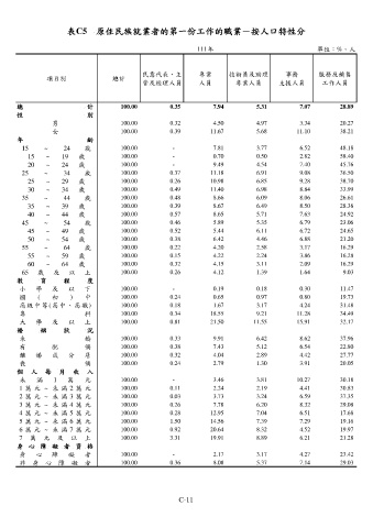 表C5 原住民族就業者的第一份工作的職業-按人口特性分