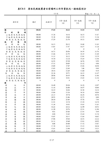 表C6-1 原住民族就業者目前場所工作年資狀況-按地區別分