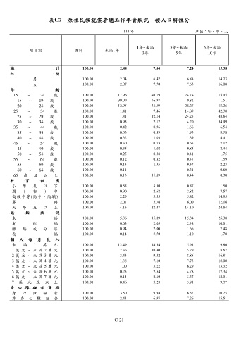 表C7 原住民族就業者總工作年資狀況-按人口特性分