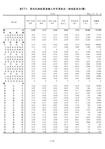 表C7-1 原住民族就業者總工作年資狀況-按地區別分(續)
