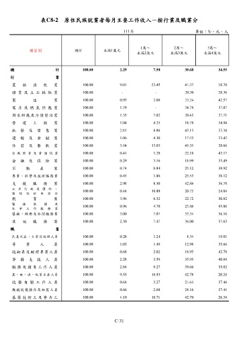 表C8-2 原住民族就業者每月主要工作收入-按行業及職業分