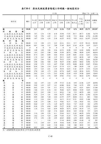表C10-1 原住民族就業者每週工作時數-按地區別分