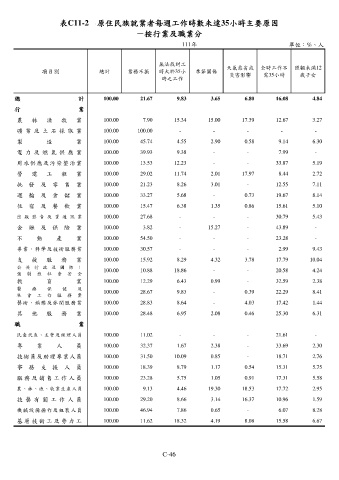 表C11-2 原住民族就業者每週工作時數未達35小時主要原因